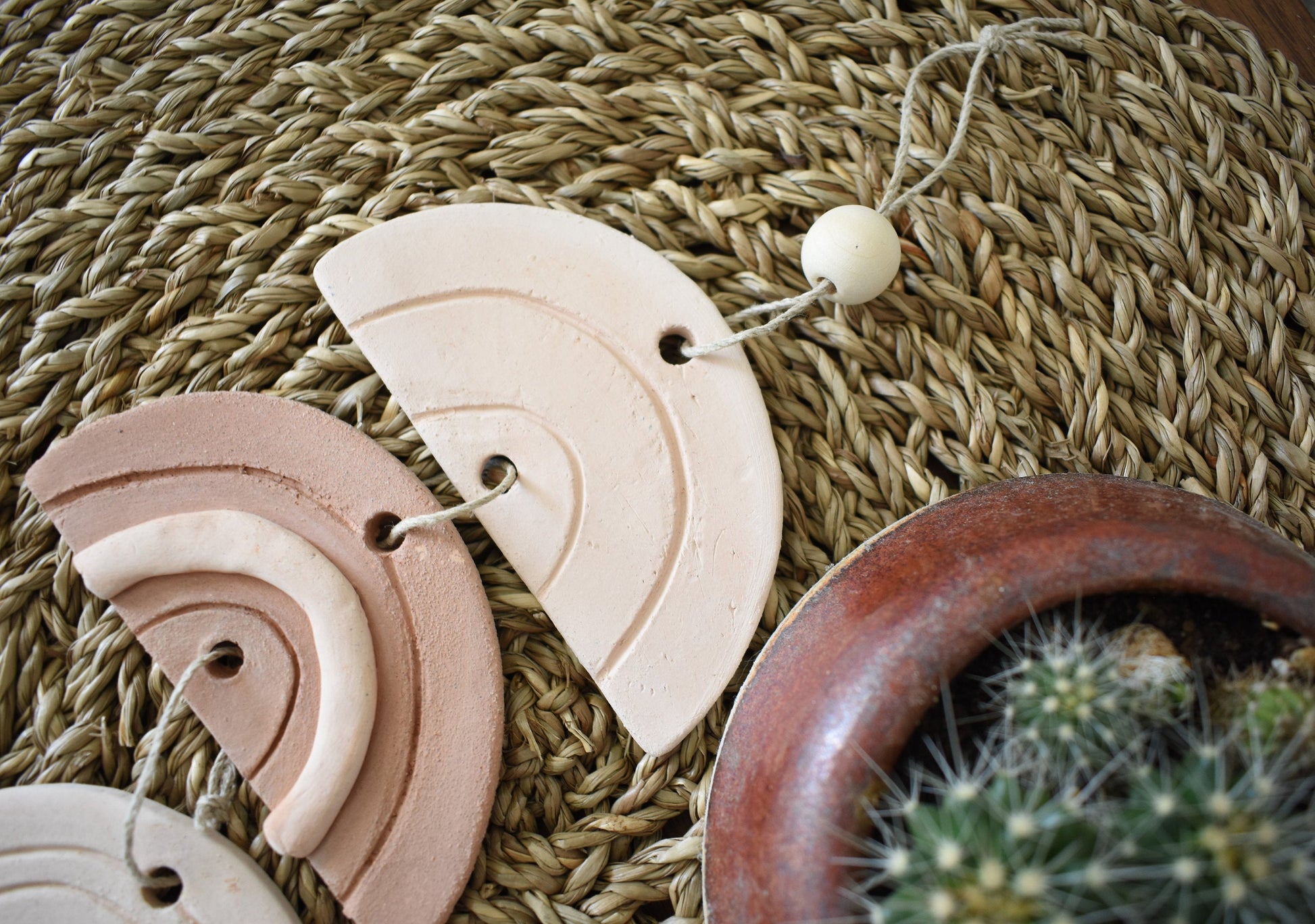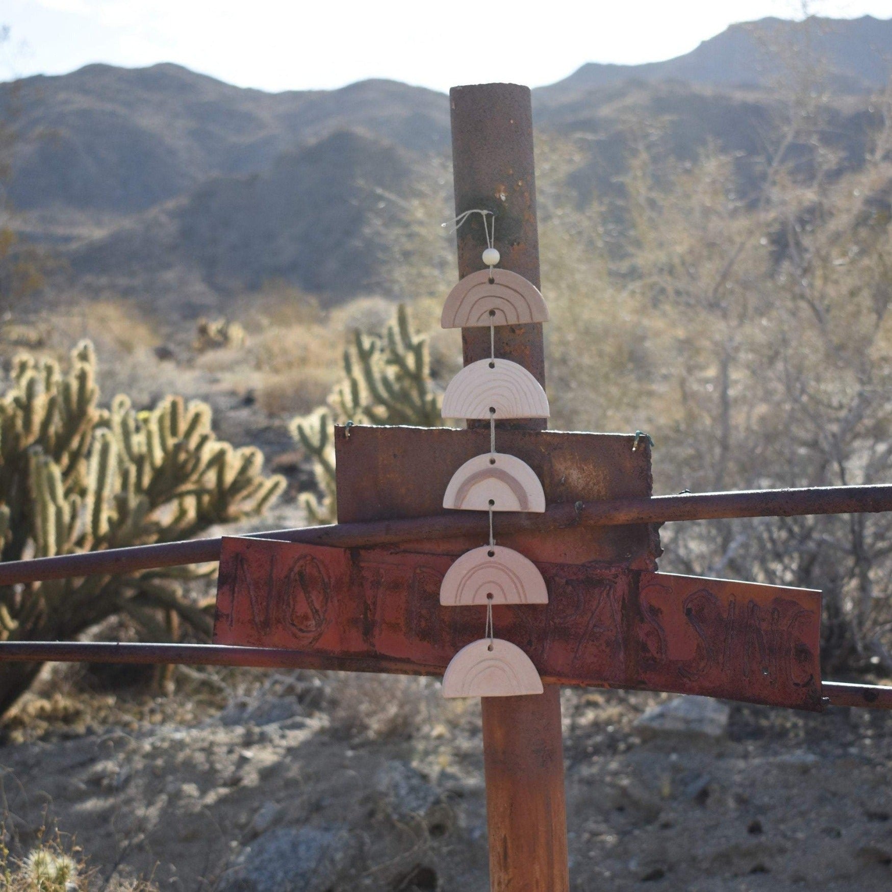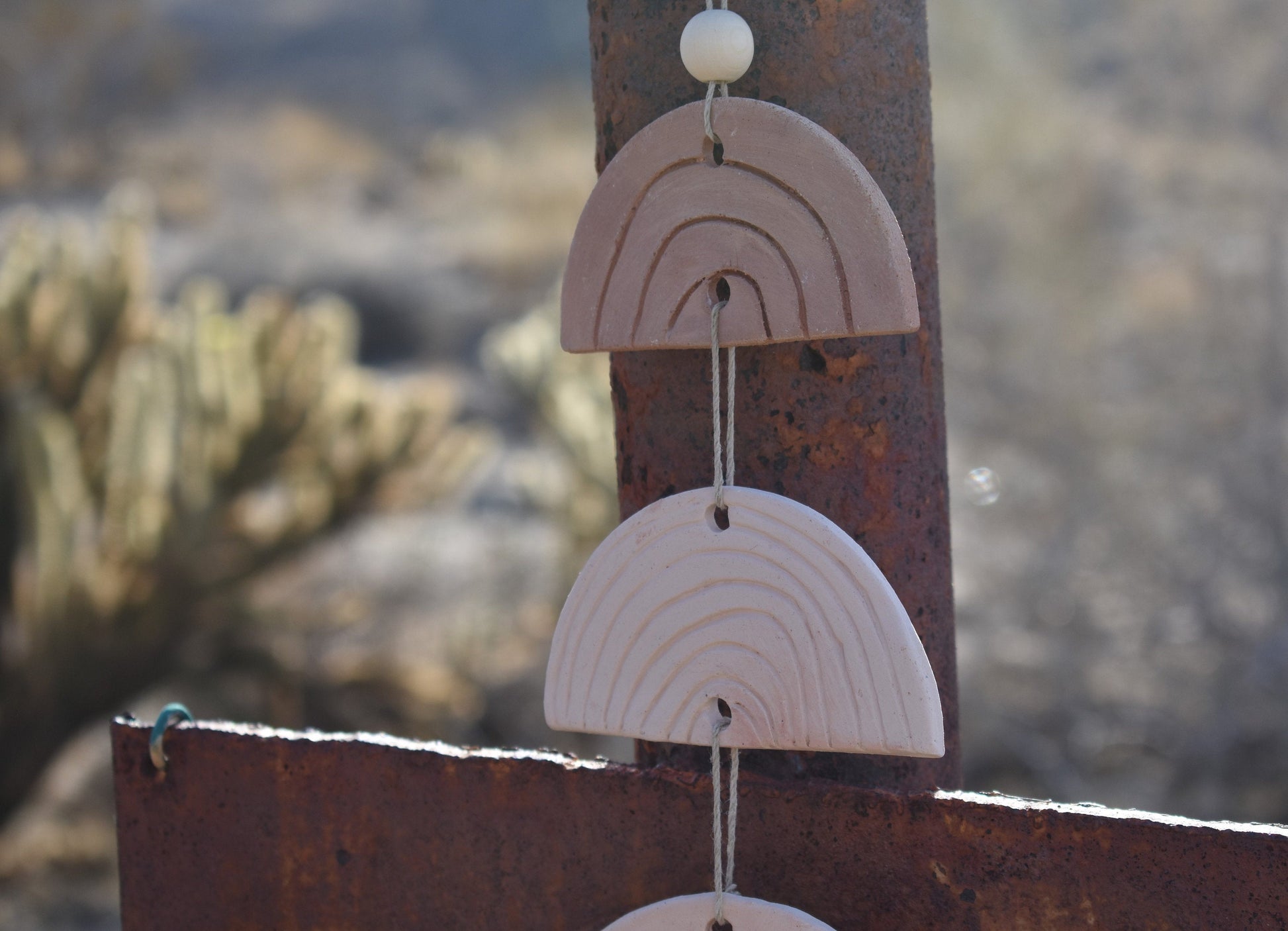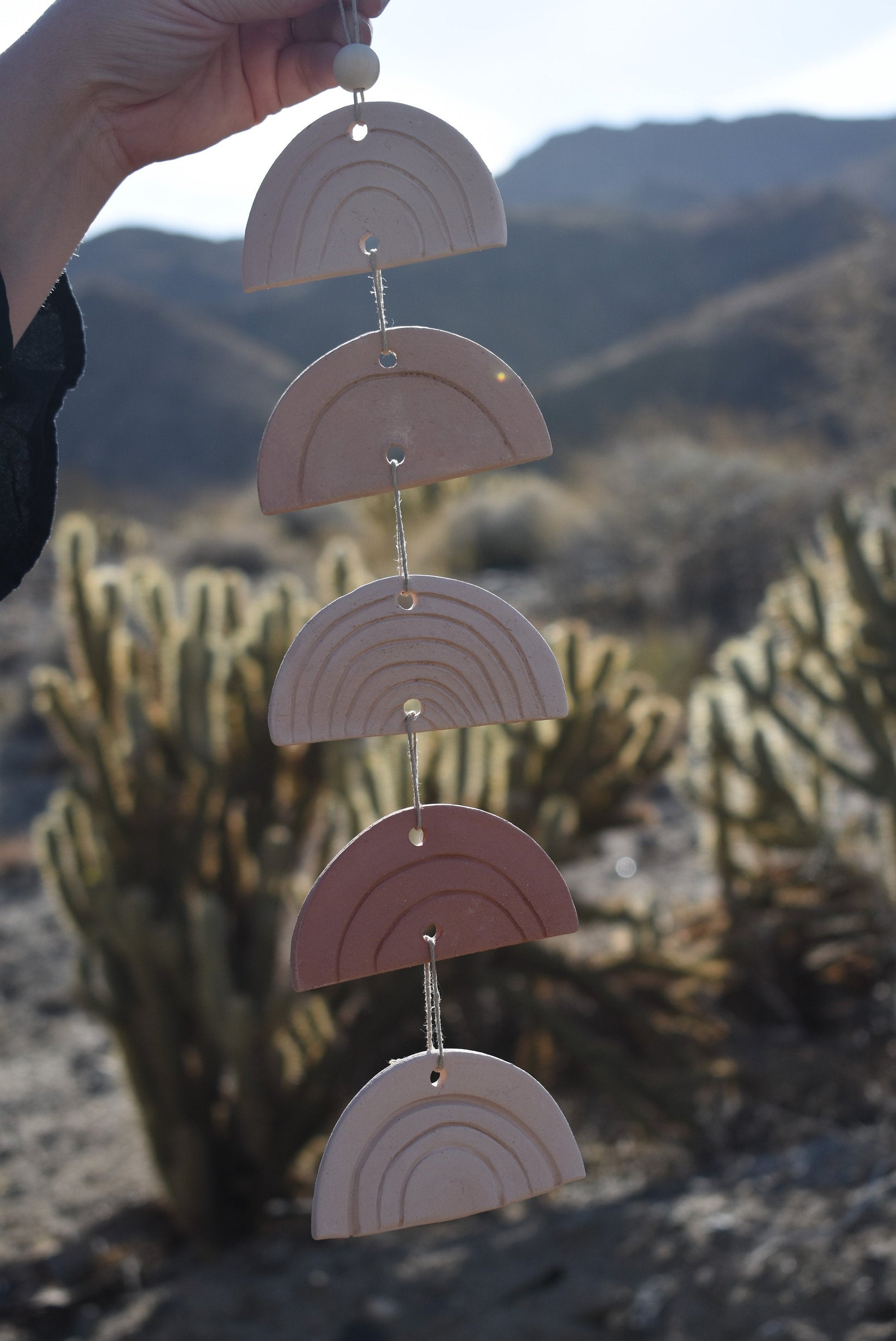 A Painted Lady exclusive, this desert rainbow wall hanging is the unique statement piece you’ve been looking for to complete your southwestern décor. Made from handmade, ceramic rainbows strung on natural cotton cord in a vertical line. Available in short or tall, this rainbow wall hanging is just the right touch of southwestern aesthetic for your space. Each rainbow is unique and made of red and cream colored clay to compliment your neutral, rustic, boho look. __________________________________