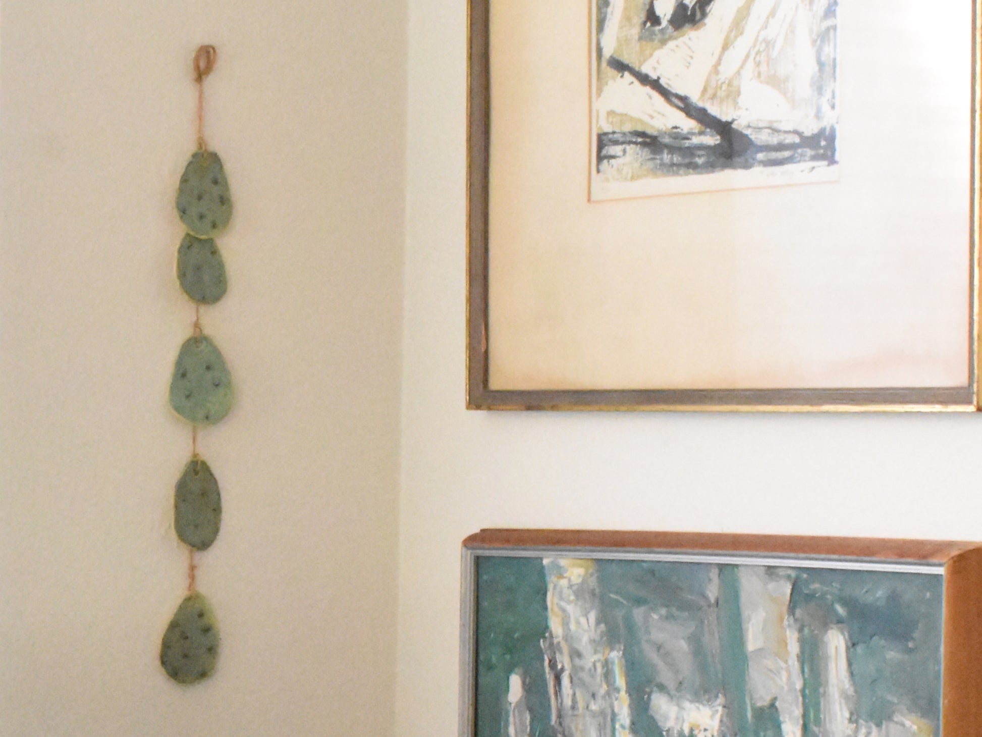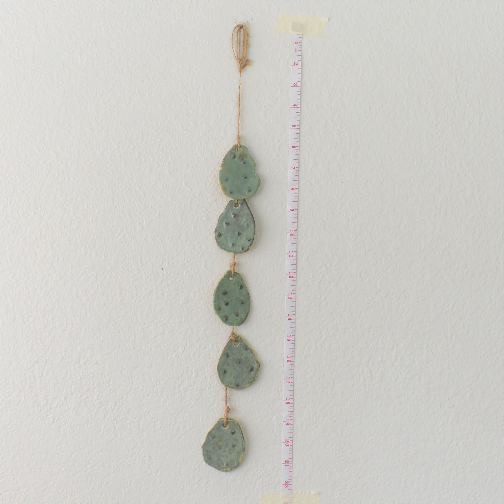 A Painted Lady exclusive, this cactus wall hanging is the unique statement piece you’ve been looking for to complete your southwestern décor. Made from handmade, ceramic opuntia pads strung on natural jute cord in a vertical line.