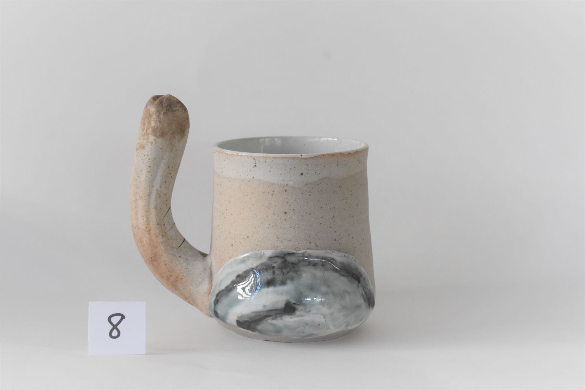 These stoneware mugs are not small, they hold about 16 oz. The handle is the geoduck's siphon (but boy, doesn't it look like something else?!) and it is okay if it makes you giggle a little. The sand texture on the mug and creamy white interior makes for a surprisingly functional piece.