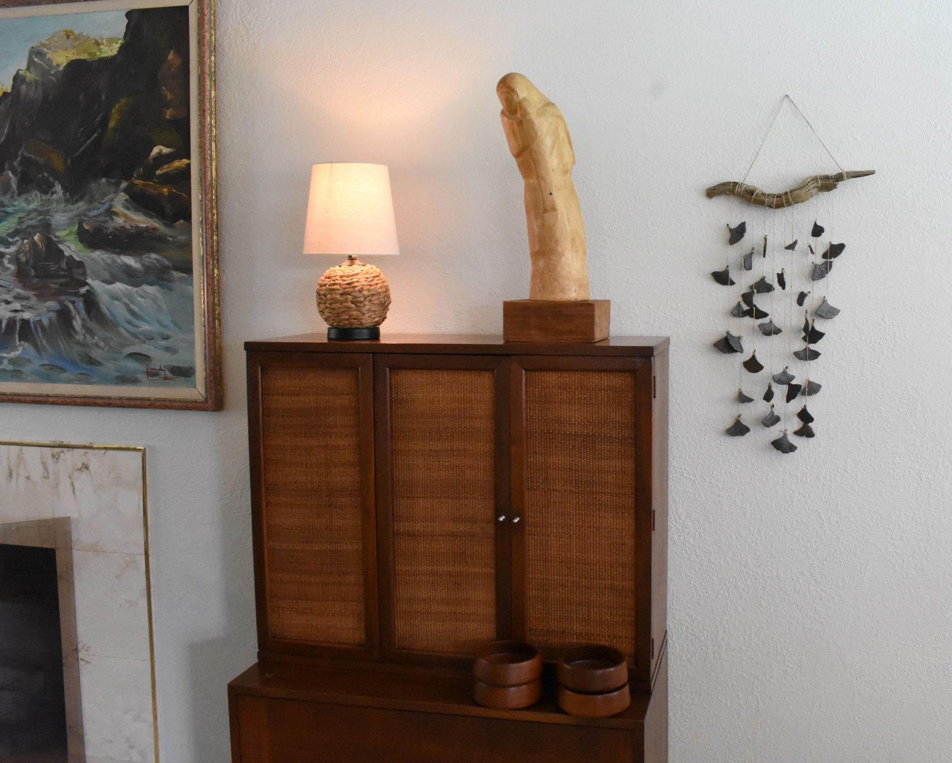 MATERIALS & PROCESS Each element of this wall hanging starts out as a soft wad of clay, then each pad is cut by hand from a slab. After they are rounded and shaped in a free-form style, they are allowed to dry slowly. After drying, the ceramic pieces are bisque fired in a kiln, then glazed and fired again up to 2300 degrees F. They are then assembled with natural jute cord and the perfect piece of reclaimed driftwood selected from my favorite secret riverbed. __________________________________
