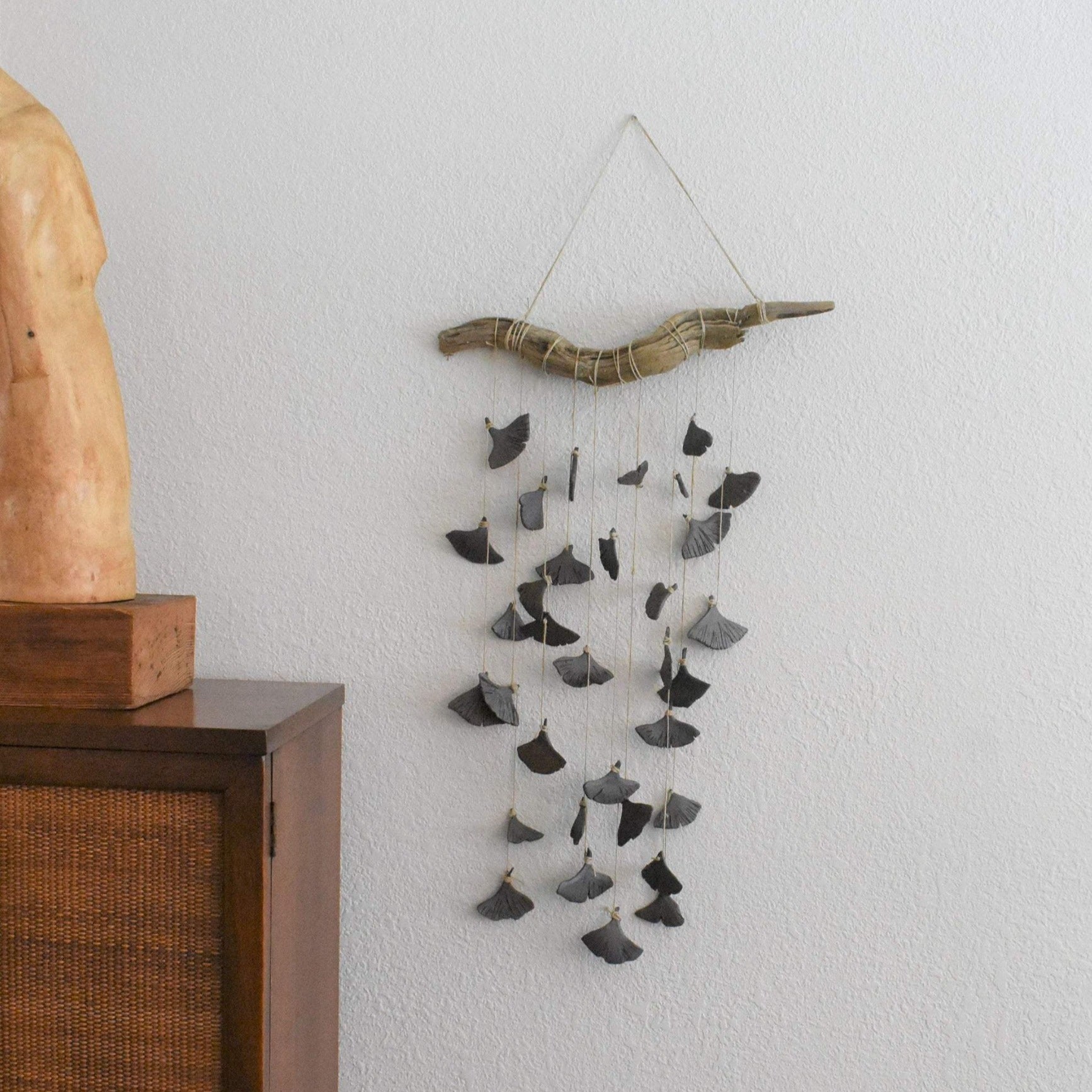 Ceramic ginkgo leaves in dark brown, tied with a natural jute cord, mounted on reclaimed driftwood. Ginkgo biloba, also known as the maidenhair tree, dates back hundreds of millions of years. I've always felt that ancient presence whenever I see ginkgo trees or the delicate, distinctive shape of their leaves. Now captured for all time in clay, you can add the ancient beauty of ginkgo to your decor. __________________________________
